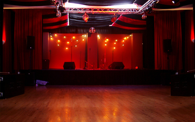 Weer een mooi theater gemaakt (12x9mtr) met licht, trussen, geluid en Verdu 350 gram aan rails systeem.